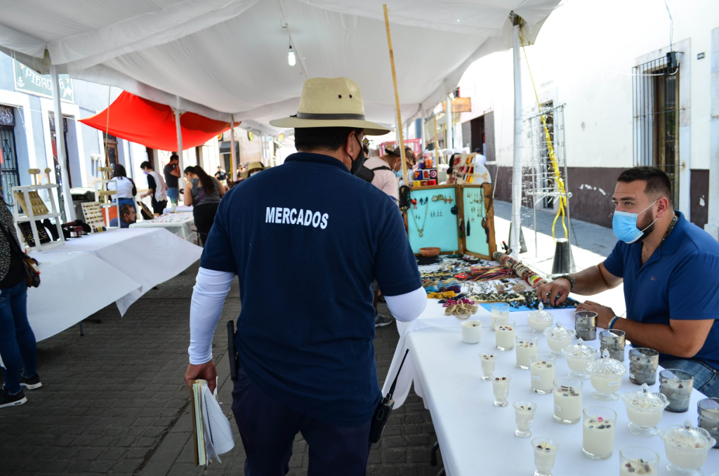 El personal operativo de verificación de la Dirección de Mercados trabaja en dos turnos, matutino y nocturno, revisando que los establecimientos y ambulantes cumplan con su permiso, giro de operación, el metraje permitido y la correcta ubicación.