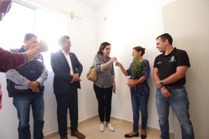 En la entrega se contó con la participación de María Guadalupe Arrellano Espinosa, regidora presidenta de la Comisión de Obras Públicas del H. Cabildo; Gustavo Granados Corzo, regidor presidente de la Comisión de Desarrollo Social del H. Cabildo; Martha Elisa González Estrada, síndica de Hacienda y Miguel Ángel Muñoz de Luna, director de programas sociales de la Sedesom.