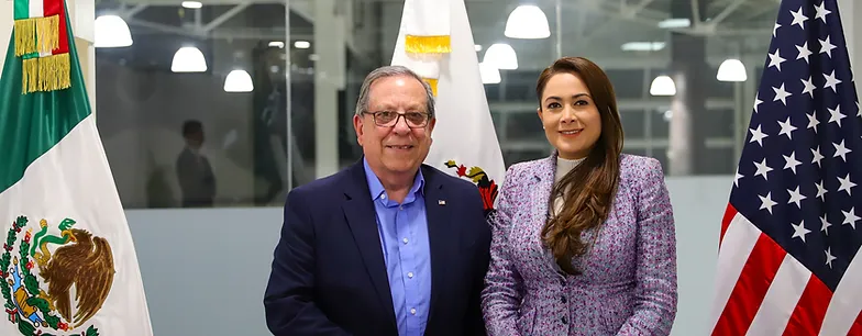 La gobernadora de Aguascalientes, Tere Jiménez, sostuvo una reunión de trabajo con el presidente de la Cámara de Comercio México-Estados Unidos, Capítulo Noreste, Luis A. Morris.