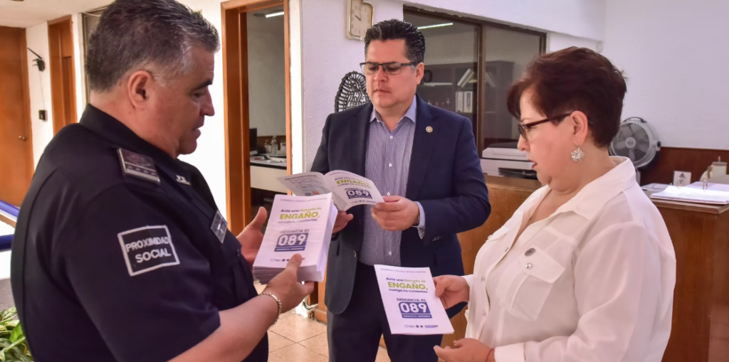 Durante las jornadas se distribuyen folletos informativos enfocados a la prevención de llamadas de engaño y robos, entre otros delitos.