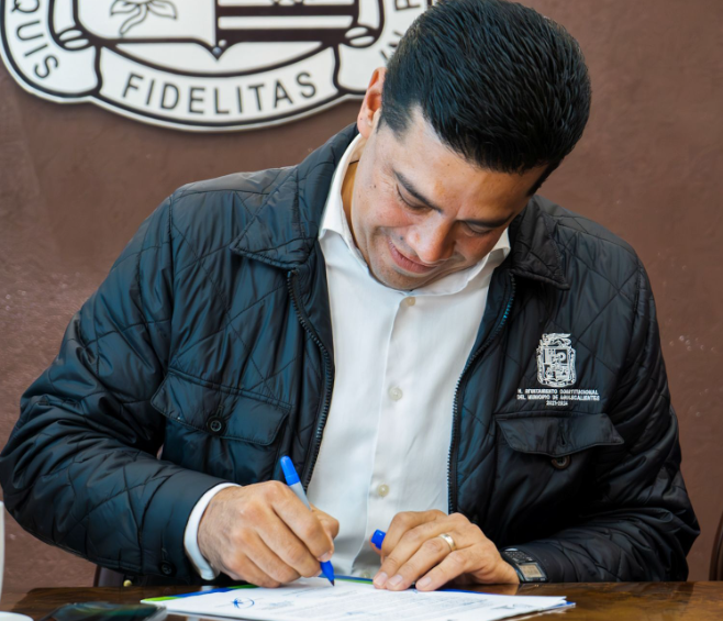 En esta firma efectuada en el Salón Presidentes de Palacio Municipal, Leo Montañez y Javier Cantalapiedra refrendaron lazos de colaboración para impulsar nuevos proyectos a favor de Aguascalientes.
