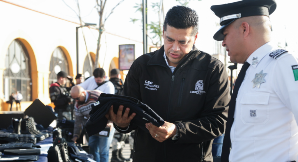 La mañana de este viernes, el presidente municipal, Leo Montañez realizó la entrega de equipamiento y uniformes, a las y los policías de la Secretaría de Seguridad Pública Municipal, con una inversión superior a los 41 millones de pesos provenientes del programa federal de Fortalecimiento de los Municipios para atender de una forma más eficiente y oportuna a la sociedad de Aguascalientes.