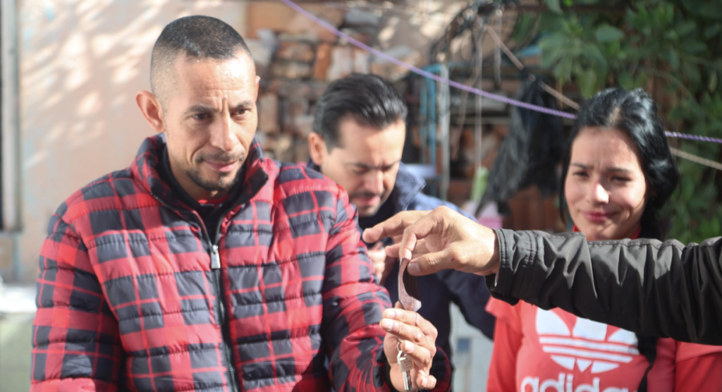 En esta visita, el presidente municipal entregó las llaves de tres cuartos adicionales a María del Carmen Delgado Díaz y María Guadalupe Rivera Cardona, vecinas del fraccionamiento Lic. Benito Palomino Dena y a Juana Esmeralda Montes, habitante del fraccionamiento Cumbres III.