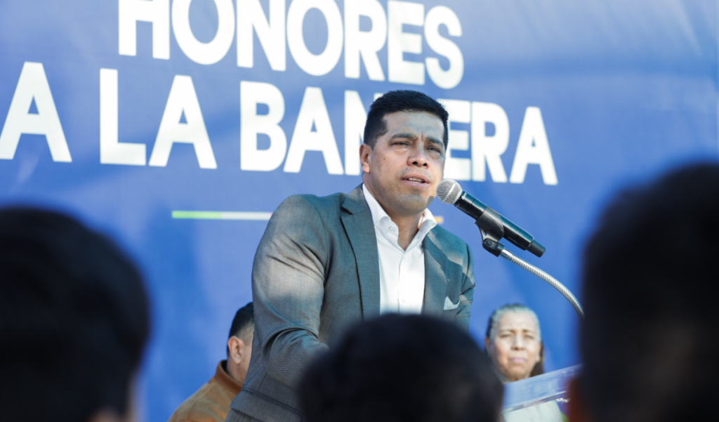 El presidente municipal de Aguascalientes, Leo Montañez, rindió honores a la bandera con alumnos y docentes de la escuela primaria Ford 57, en donde entregó chalecos a Yael Sebastián López Rodríguez y Valeria Robledo Montes de 6° A, quienes serán inspectores honorarios del programa «Yo Reciclo», para impulsar el cuidado al medio ambiente y la separación de materiales para darles un segundo uso.