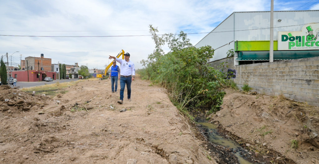 El presidente municipal Leo Montañez, fortalece las acciones preventivas de limpieza en el canal ubicado a un costado de la colonia Estrella, con el objetivo de retirar residuos que obstruyan el paso del agua, prevenir acumulaciones, encharcamientos, formación de espuma y evitar riesgos en temporada de lluvias.