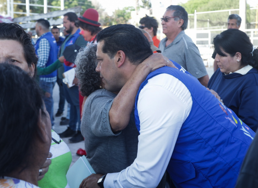 • En las instalaciones de la cancha Fidel Velázquez, el presidente municipal Leo Montañez se reunió con familias del área